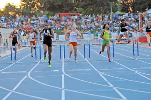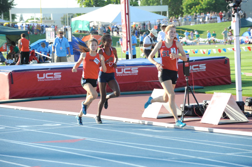 Sarah Robinson of Gunn (central division) won the mile (4:44.25) with Great Oak’s Destiny Collins (southern section) taking second (4:51.47) and Amanda Gehrich of Tesoro (ss) placing third (4:52.20). Clovis North Mikaela Smith won the 800m in 2:06.85 and Anna Maxwell of S Lrnz (cc) took second (2:08.32) followed by Buchanan’s Hanna Benoit (2:08.75). The girls’ 300 hurdles was won by Piedmont’s Reonna Collier (cc) (40.90).