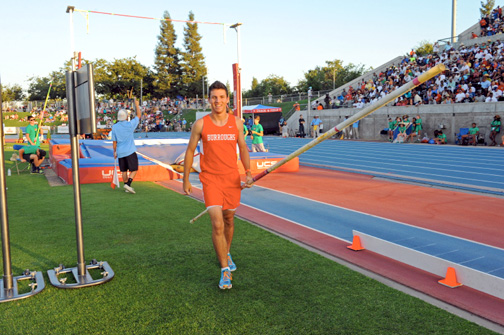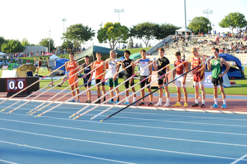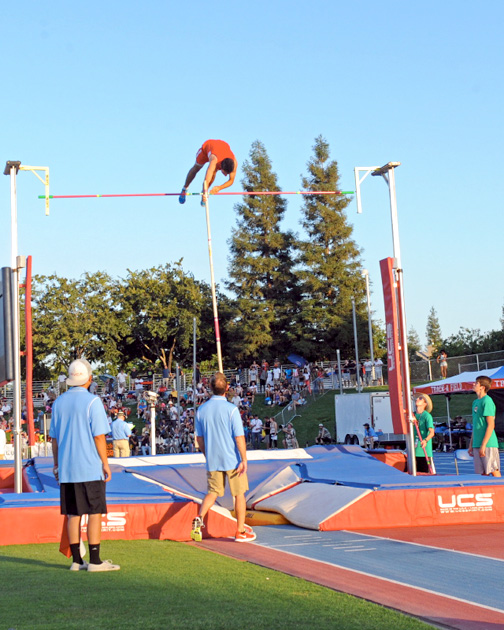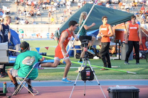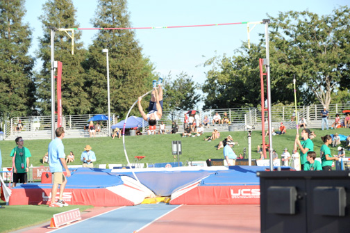 By the end of Friday’s competition, several top athletes experienced complications in their performances and were not able to advance to Saturday’s contest. Among those were the twins from Flintridge Prep – Barrett and Gareth Weiss – who had jumped 15-2 at the masters’ meet. The pair did not have the extra punch to clear the passing height of 15-3 to qualify. Barrett placed 17th on Friday clearing 14-3, and Gareth placed 19th, also clearing the same height.