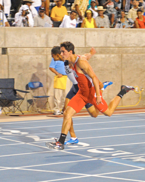 The 800m was one of the fastest races of the day when nine athletes timed in under 1:53.60. Morris came back after his 110H and won the 300H in 36.86.