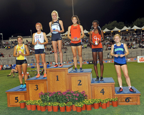 Stamatia Scarvalis won both the discus (163-07) and the shot put (52-02.00) for the second time at state. Stockdale’s (cc) Asia Chelsey won the high jump (5-10.00) with Harvard-Westlake (ss) placing second at the same height. Carson’s (la) Ashley Anderson won the triple jump (41-03.00). Margaux Jones of Redlands (ss) won the long jump (20-04.75). Los Gatos’ (cc) Greta Wagner won the pole vault (13-00.25). Mecca McGlaston of Dublin (cc) took the win in the 100m hurdles with a time of 13.54.
