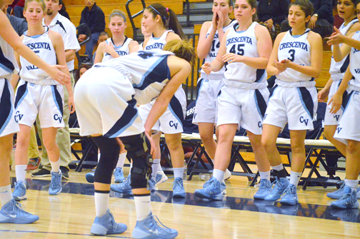 Get Me Some Gatorade, Please:  Ella Stepanian is exhausted late in the game against Arcadia on Jan. 24, a 49-42 Falcon victory. Stepanian successfully returned from an ACL tear her junior season to lead her team to a 20-9 record and won Pacific League MVP honors.