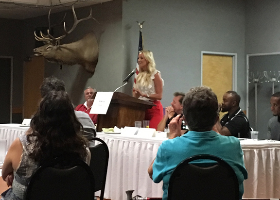 Ashley Brewer – ABC 7 Sportscaster Ashley Brewer addressed the Quarterback Club members at its recent meeting.