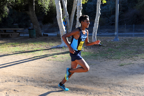 Newbury Park, which is used to running a flat course, settled for the next three places; first man for the team was senior Ethan Duffy taking eighth, followed by junior Nathaniel Garner (17:06.00) and sophomore Ethan Ronk 17:28.09). CV senior John Yoon, who showed much promise on the track last season, placed 11th running 17:34.28 and teammate Kevin Faeustle took 12th (17:36.91).