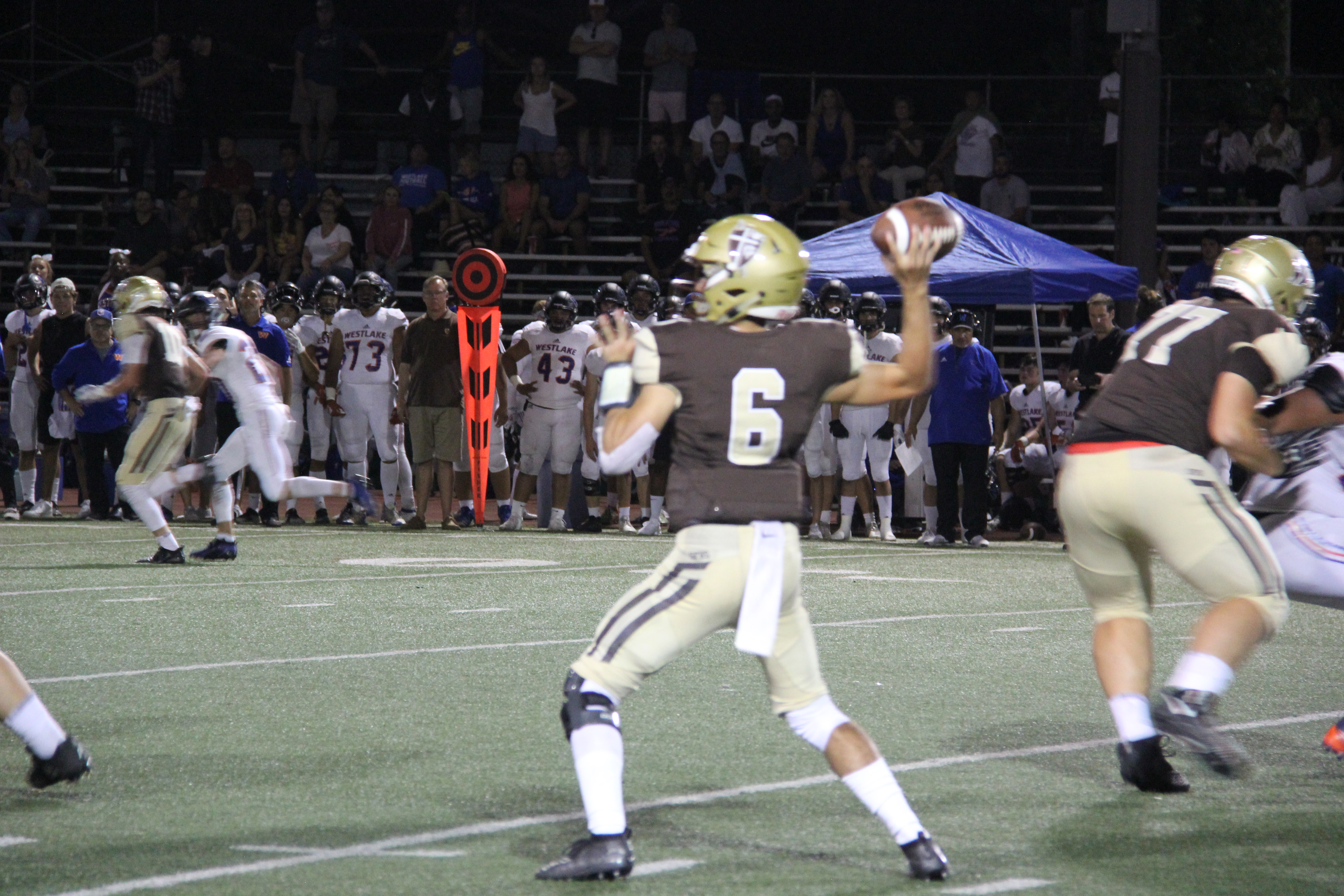 On a cool night at Friedman Field the Golden Knights (2-1) entered one of their toughest games this season when they faced Westlake High School (1-3). The Warriors came into the game after facing experienced teams such as Sierra Canyon and Oxnard. How well the Golden Knights and the Warriors were matched was apparent by the end of the third quarter, but early mistakes in the fourth by the St. Francis offense made the comeback too difficult and they fell 41-35.