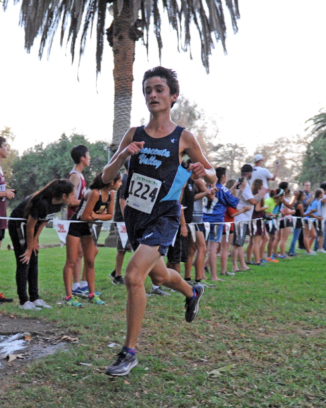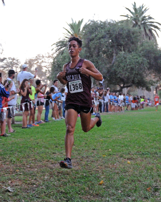 The first Pacific League cross-country meet of the season was held Thursday on the Arcadia Apaches’ home course. The athletes ran a course that is flat overall with several loops running throughout the parks. All top boys varsity contenders huddled together throughout the first mile including Dynamiter Paulo Vasquez, who took the lead, followed by Falcon Phillip Thomas.