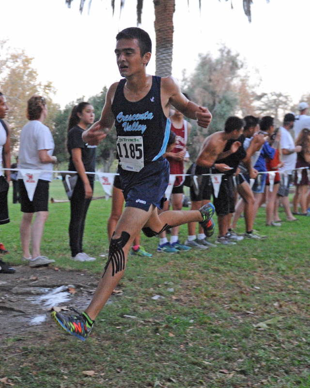 The Falcons worked hard in preparation of the meet with the goal of making a significant impact against the two highly rated teams – the Arcadia Apaches and the Burroughs Indians. Falcon Thomas advanced his position during the second loop of the course to gain the lead. State champion Phillip Rocha of Arcadia held back during the first mile and a half, but at the second mile amped up his speed. Rocha, confident of his ability, advanced with ease.