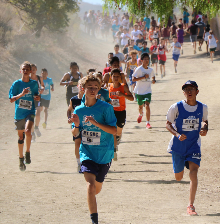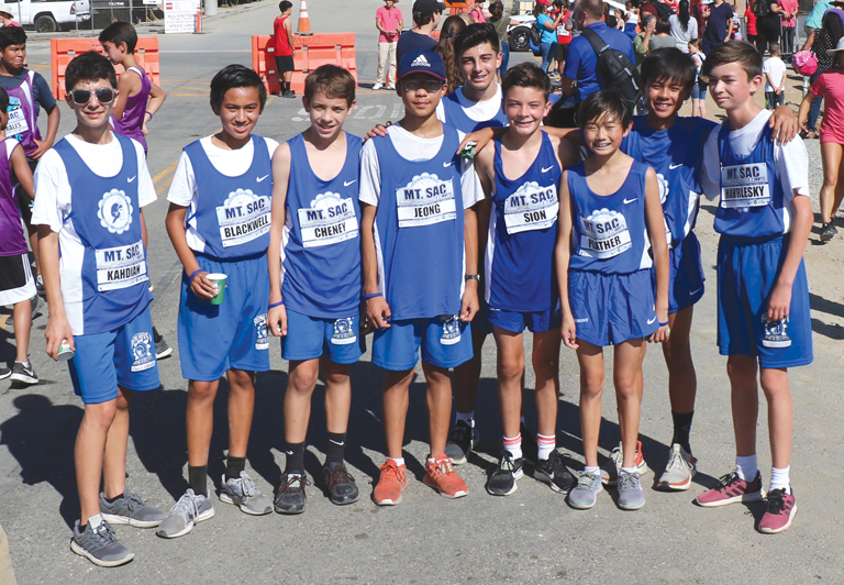 This group of runners was only the second in the recent history of Rosemont Middle School to participate in the nationally known Mt. SAC cross-country invitational held at Mt. San Antonio College in Walnut. The first races were held in 1948. Now more than 23,000 runners from 500 schools (elementary through college) participate in this invitational cross-country race. Last year, seven eighth graders represented Rosemont.