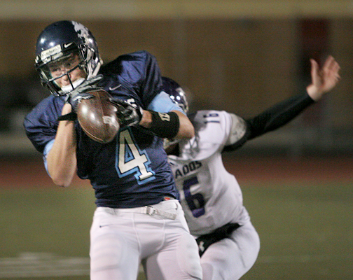 Jack Lutynski catches a pass in the second quarter and runs for a touchdown to gain the lead over the Hoover Tornados.