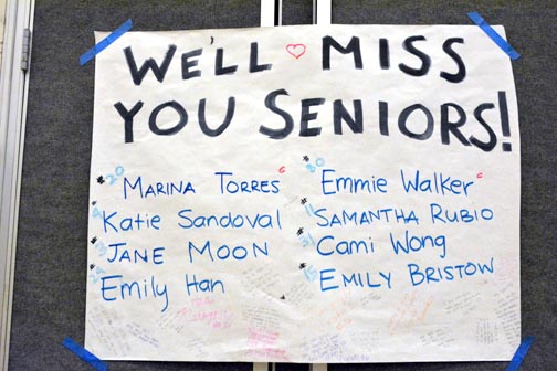 The Falcon seniors are Walker, Sandoval, Rubio, Marina Torres, Jane Moon, Emily Han, Cami Wong and Emily Bristow.
