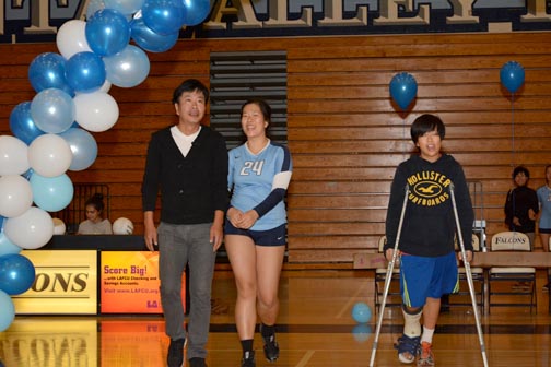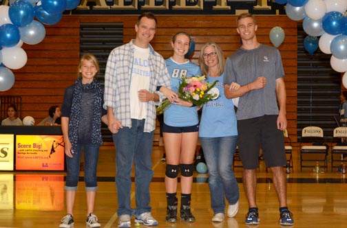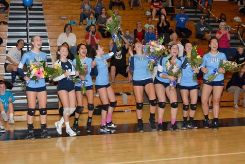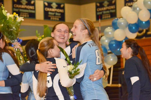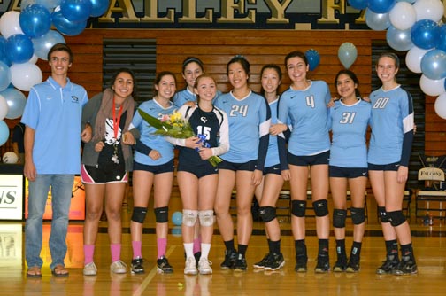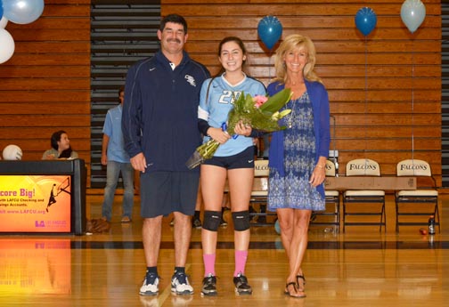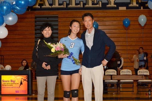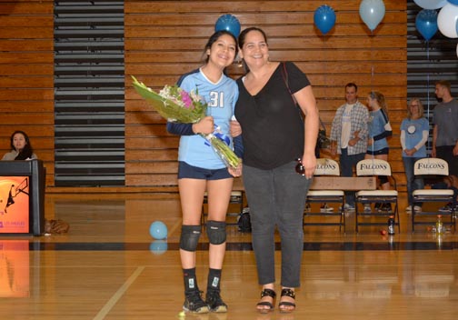 The Crescenta Valley High School girls’ volleyball team wrapped its season on Tuesday and said goodbye to its eight seniors with recognition before the game against Arcadia. The Falcons lost in three sets 15-25, 15-25, 15-25. Emmie Walker had eight kills and five digs, Katie Sandoval had nine kills and three blocks and Sam Rubio had seven kills and two blocks.