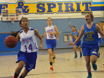 There was a scary moment in the second half involving eighth grader Caity Bouchard, arguably the team’s most talented player. Caity had the ball and went down hard as her knees knocked against players and the floor. She stayed down for several minutes, grabbing her left knee. She was able to finally walk off the court, though she did not return. Bouchard did report after the game Caity was fine and no real injury was sustained.
