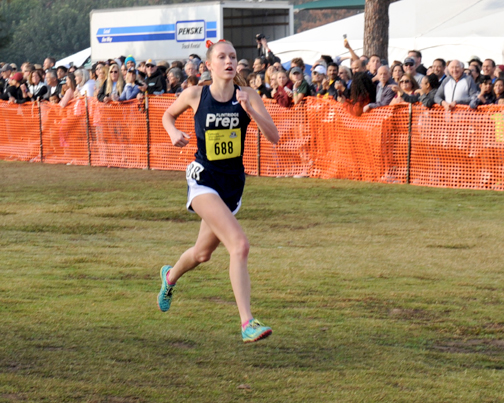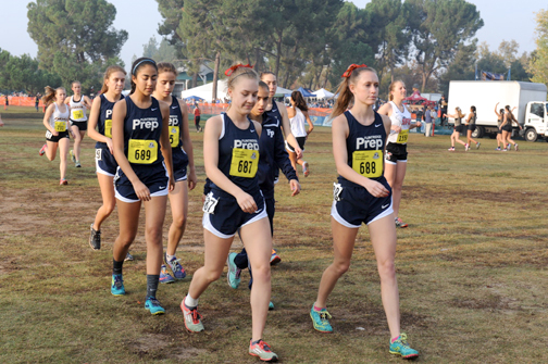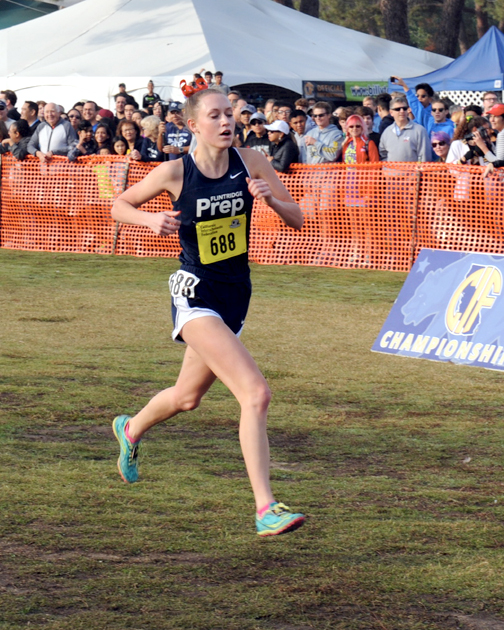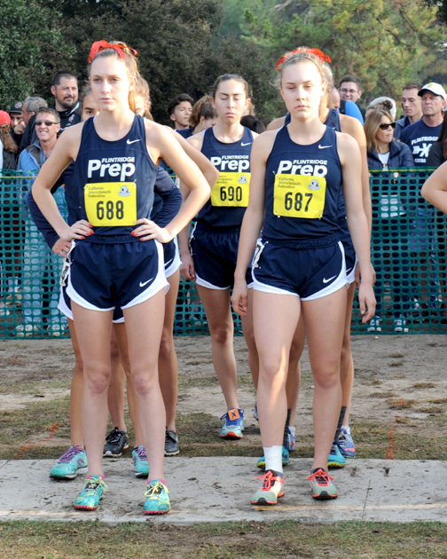 The Flintridge Prep boys and girls have had many outstanding years at the CIF State Cross-Country Championship Finals. This year the boys’ team placed fourth in Division 5 scoring 137 points. Senior Evan Pattinelli, who ran 15:38.7, poured it on at the finish to win the race. Teammate Carson Hasbrouck placed 12th (16:02.0), Bennett Oaks 37th, (16:52.8) Sebastian Evans 58th, (17:16.9) and Andrew Odom 76th (17:26.6).