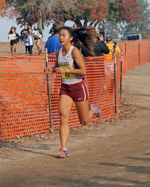 The Arcadia girls placed fourth scoring 181 points in Division 1. Great Oak girls won the Division again with 71 points. The Arcadia team consisted of Jasmine He, 16th, (18:13.6), Natalie Stepanian, 19th, (18:18.8), Joyce Wu, 23rd, (18:22.8), Kelly Lang, 82nd, (19:19.6) and Dani Rodriguez, 104th, (19:37.3).