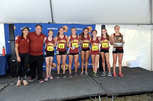 The La Cañada girls took home the third place title in Division 4 scoring 147 points. Lead runner Kayley Bond placed seventh (18:35.7). The team consisted of Katharine Scoville who placed 29th (19:19.3), Sarah Auther, 53rd, (19:54.7), Ellaney Matarese, 56th, (20:01.9) and Adena DiPaolo, 67th, (20:13.5).