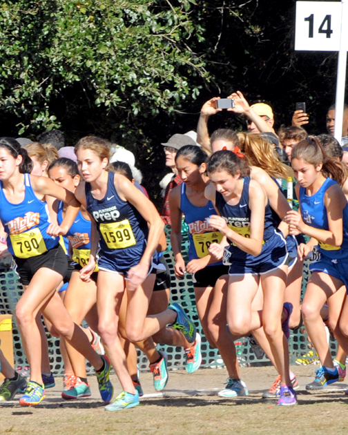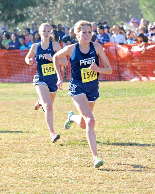 The Flintridge Prep boys and girls teams proved that they were contenders for the championship titles. Junior Jack Van Scoter scored second place running 15:32 to lead his team to a third place title. The boys’ team was comprised of Van Scoter (15:32 ), Jonathan Vahala (23rd running 16:39), Evan Patinelli (25th running 16:41), Rab Moran (26th running 16:47 ), Riley Coan (34th running 16:58 ), Sham Patel (47th running 17:14), and Chris Tan (71st running 17:39).