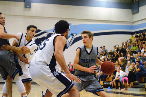 The Crescenta Valley High School Falcon varsity boys’ basketball team won its Pacific League opener on Tuesday at Hoover High School when they downed the Tornadoes 79-47. In the easy win, Tyler Carlson had 22 points to lead the team, and he connected on five three-pointers. Andreyas Boghossian helped with 20 points.
