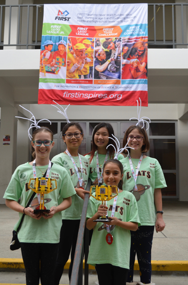 LCATs (La Crescenta Adventure Troop), a FIRST (For Inspiration and Recognition of Science and Technology) LEGO team consisting of five sixth grade girls from the Girl Scout Cadettes troop 3481 from the La Crescenta Glendale Service Unit, recently took part in the organization’s league championship tournament. The girls attend Monte Vista Elementary School and St. James – Holy Redeemer School. The tournament finished the FIRST LEGO season, which begins in August and continues through December. The LCATs are coached by Paul Backes.