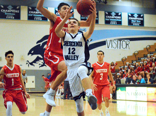 A night of cold shooting doomed the Crescenta Valley High boys’ basketball team on Feb. 15, eliminating the Falcons in the first round of the CIF playoffs. The 64-40 home loss to Whittier ended another successful season for CV, which won 18 games and claimed third place in the Pacific League. The Falcons were at least able to provide a thrilling finish to the regular season, when senior Koko Kechichian made a layup with seconds left to pull out a win over rival Arcadia.