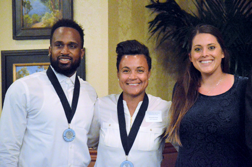 After four decades of service to Crescenta Valley High School, the memories are plentiful for Jim Beckenhauer, though a couple stood apart for him as he spoke to a full room at Oakmont Country Club. There was the installation of the synthetic track and field in 2006, which took enormous work from CV CAN, in which Beckenhauer was involved. There was also the time then-principals Gary Talbert and Linda Evans asked him to represent the school in Washington, D.C. for the National Blue Ribbon ceremony in 2000. CVHS was given the honor, and “Beck,” as everyone knows him, asked Talbert why he chose him. “You would be representing CV athletics,” Beckenhauer remembered Talbert saying, “which is always important to the success of the school.” The 2017 Hall of Fame Induction Class for Falcon athletes was another reminder how intertwined sports, school and character are in La Crescenta. Joining Beckenhauer were inductees Doug English, Thomas Gossard, Allen Holmquist, Adam Jacobsen, Keith Kinsel, Baillie Kirker, Aaron McGuinness, Mike Norseth, Kenny Pritchett and Amanda Peek.