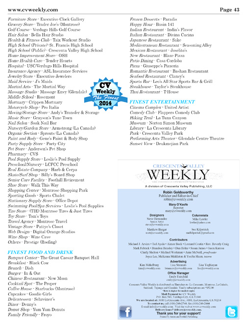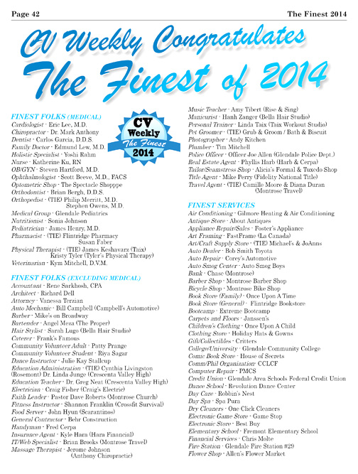 Share on Facebook Follow on Facebook Add to Google+ Connect on Linked in Subscribe by Email Print This Post Please click on the link to download. The Finest Winners 2014 added by CV Weekly on September 25, 2014View all posts by CV Weekly →
